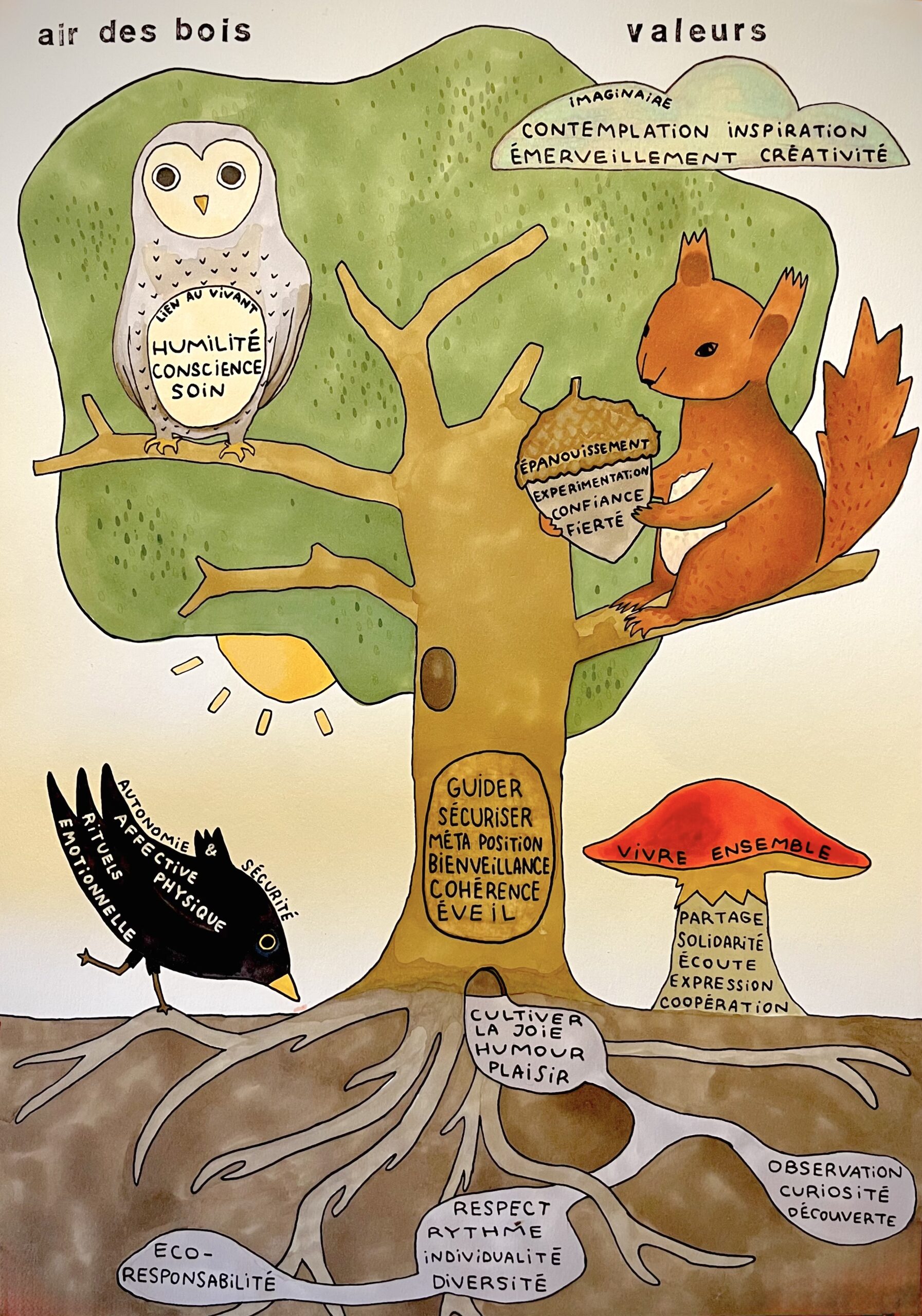 L’équipe éducative du CVF est composée de professionnelles de l’enfance diplômées. En plus de leurs compétences pédagogiques, elles sont formées en éducation à l’environnement par la nature, avec un axe particulier pour les enfants de 3-6 ans. Plusieurs d’entre elles travaillent depuis plusieurs années en milieu forestier.